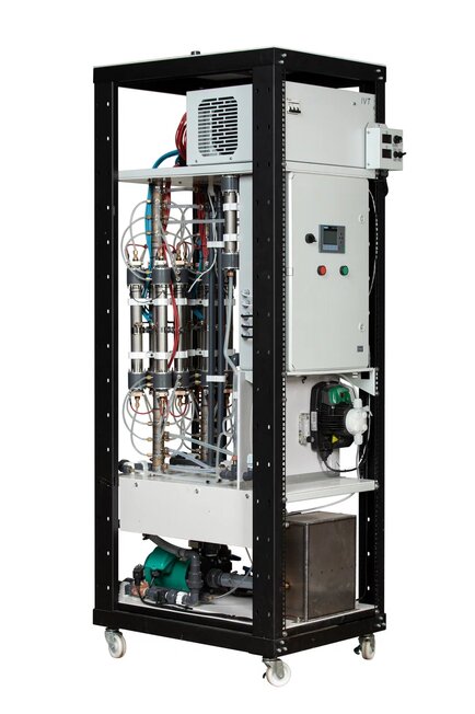 - не требуется строительство новых специальных помещений. Все оборудование размещается в сухих проветриваемых помещениях, оснащенных линиями подвода энергии, воды, исходного солевого раствора и обычной канализации;
